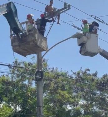 La Empresa Distribuidora de Electricidad del Norte, Edenorte, sacó de servicio el circuito de esa zona para evitar que se electrocutara el joven que permaneció por más de una hora sobre el poste que sostiene cables de alta tensión, en el Callejón de la Loma en Cabarete.