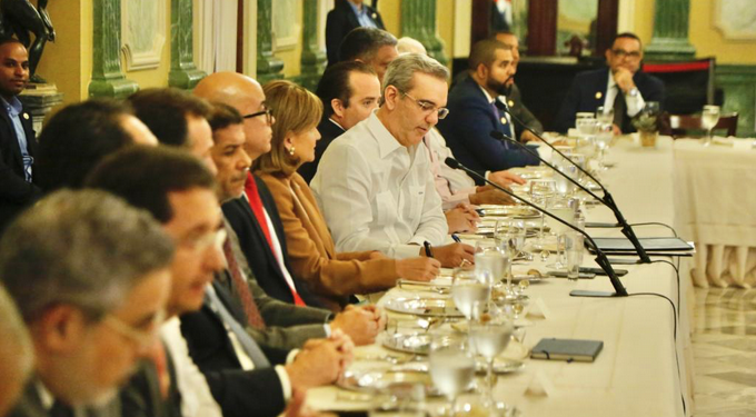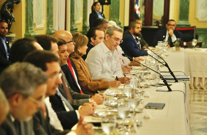 Abinader expuso sus pareceres sobre distintos temas nacionales en una conversación abierta con más de 40 periodistas y comunicadores en un almuerzo que se extendió por dos horas y media en el Salón Verde del Palacio Nacional.