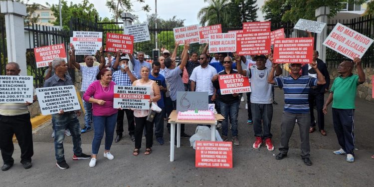 Santiago – Los 3,600 empleados cancelados del Ayuntamiento de Santiago de los Caballeros protestaron con una concentración para reclamar las prestaciones laborales.