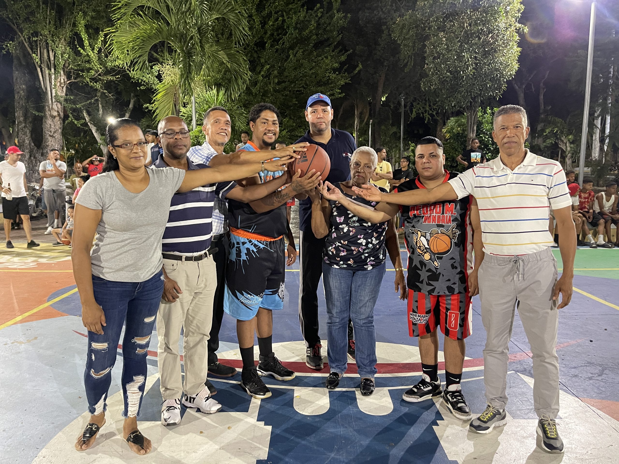 Primer juego de la finales del Torneo Junta de vecino Fe y Esperanza compitiendo por la Copa trapiche licor store Saque de honor en presencia Doña Minerva Martínez a quien está dedicado el torneo el Parroco de la Iglesia San José de la Montaña Fray Inocencio Sánchez y el Ministro De la Iglesia San José de la montaña Priamo Reyes Martínez.