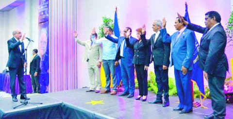 El presidente del PLD, Danilo Medina, toma el juramento a los miembros del recién electo Tribunal Disciplinario del PLD.