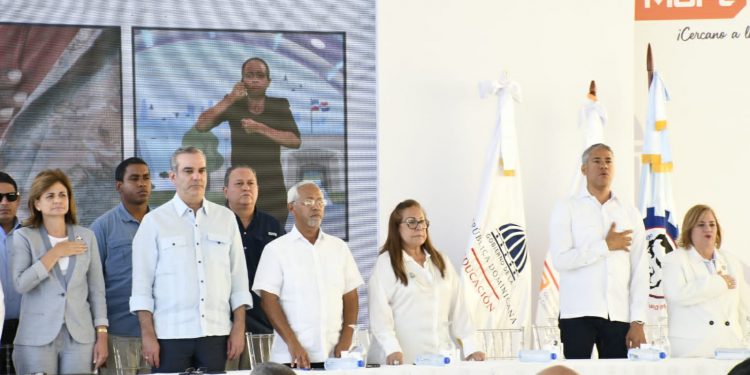Presentes en el acto, Vicepresidente Raquel Peña,el ministro de la Presidencia José Ignacio Paliza, el presidente del Senado Eduardo Estrella, la gobernadora provincial Rosa Santos, la directora regional de Educación Marieta Díaz, el director de Proindustria Ulises Rodríguez, el director de Edenorte Andrés Cueto, el diputado Mateo Espaillat, el director del distrito educativo 08-03 Pedro Pablo Marte, entre otras personalidades.
