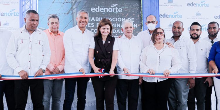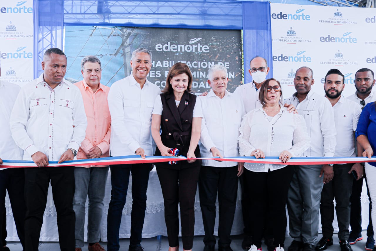 Hato del Yaque (SANTIAGO). – En un acto encabezado por la vicepresidenta de la República Raquel Peña, Edenorte Dominicana entregó un amplio proyecto de rehabilitación e iluminación que beneficiará 1521 clientes de este distrito municipal.