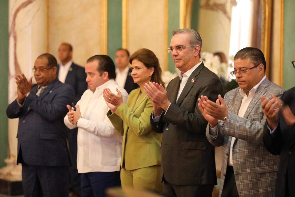 Santo Domingo. – El presidente Luis Abinader y la vicepresidenta Raquel Peña recibieron hoy en el Palacio Nacional a las Reinas del Caribe, actuales campeonas de la XIX Copa Panamericana de Voleibol Femenino celebrada en México.
