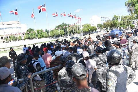Un grupo de militares de las Fuerzas Armadas (FARD) y miembros de la Policía Nacional (PN) retirados encabezan la mañana de este martes una protesta frente al Congreso Nacional.