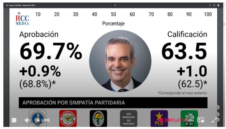 Santo Domingo.- Una aprobación de 69.7% al mes de septiembre tiene el presidente Luis Abiander de acuerdo a la tercera entrega la encuesta RD elige de RCC Media dada conocer este jueves 15 de septiembre.