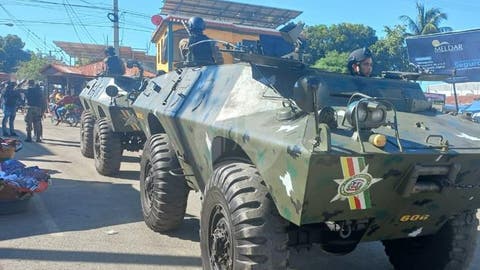 Tanquetas circulan en las periferias del mercado. Los miembros del Ejército de República Dominicana están comandados por coronel Rosario Pérez.