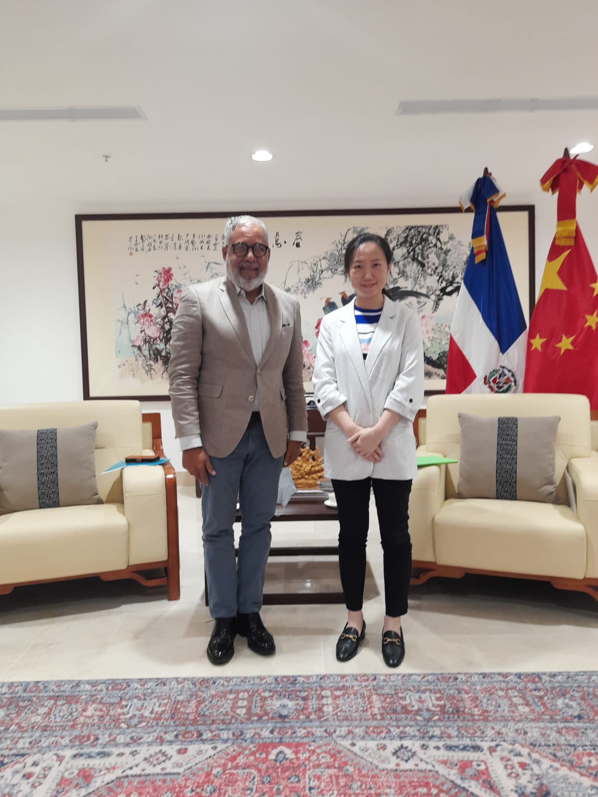 Indicó sentirse sumamente satisfecho con el trato afable que recibió de parte de Zhou Yugi, quien dignamente desempeña la función de encargada de negocios del país asiático en el territorio dominicano.