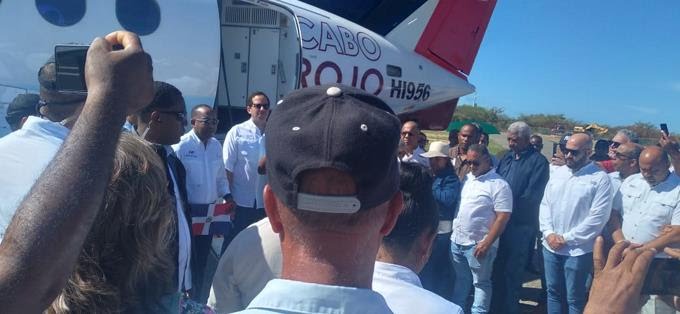 El primer avión, con la ficha HI956, llegó con 19 pasajeros al aeródromo de Cabo Rojo, entre ellos Víctor Pichardo, director Aeroportuario; Sigmund Freund, director ejecutivo de Alianza Público Privada; Carlos Jiménez, director Administrativo de la aerolínea y Danilo Rosario, gerente general de Rep-Air.