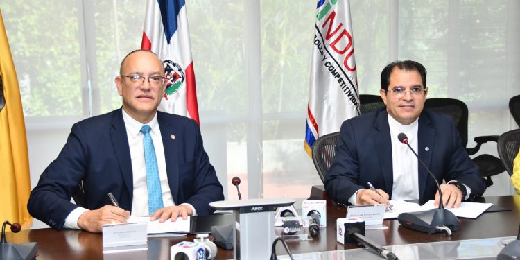 Santiago, R.D.- Con el objetivo de fomentar las actividades investigativas y de capacitación el Centro de Desarrollo y Competitividad Industrial (Proindustria) y la Pontificia Universidad Católica Madre y Maestra (PUCMM), firmaron un acuerdo de colaboración interinstitucional, dirigido a estimular la transferencia de conocimiento, la innovación y desarrollo tecnológico de la industria manufacturera, a través del desarrollo de programas de diseños industriales, modelos de utilidad e invenciones.