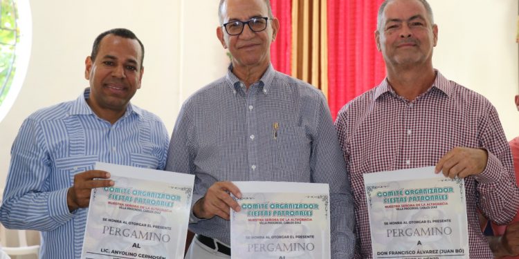 El reconocimiento fue entregado por el presidente de la Junta de Vecinos, Francisco Vásquez y la secretaria Wendy Vásquez en el marco de la conclusión de las fiestas patronales, en la que también fueron galardonados el alcalde Tamboril Anyolino Germosén y Francisco Alvárez (Juan Bo), ex alcalde de ese municipio, entre otros.