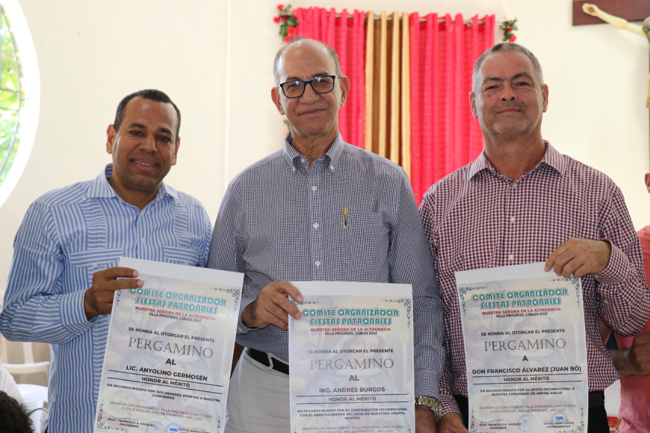 El reconocimiento fue entregado por el presidente de la Junta de Vecinos, Francisco Vásquez y la secretaria Wendy Vásquez en el marco de la conclusión de las fiestas patronales, en la que también fueron galardonados el alcalde Tamboril Anyolino Germosén y Francisco Alvárez (Juan Bo), ex alcalde de ese municipio, entre otros.