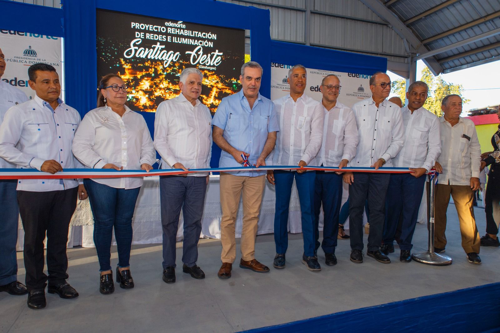 El gerente de la Empresa Distribuidora de Electricidad del Norte, al pronunciar el discurso de entrega del proyecto de Rehabilitación e iluminación de varios sectores del distrito municipal Santiago Oeste, en presencia del mandatario, a quien dijo hay que darles la oportunidad de cuatro años más.