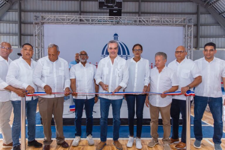 La Romana.- El presidente de la República, Luis Abinader, encabezó la entrega de dos polideportivos, un club deportivo y una cancha de baloncesto en La Romana para promover el sano desarrollo y la recreación de niños, jóvenes y adultos.