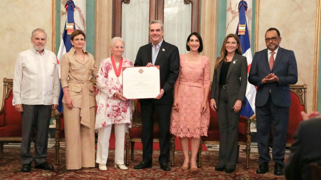 Santo Domingo.- El presidente Luis Abinader, junto con la vicepresidenta Raquel Peña, concedió mediante el Decreto 128-23 la Orden Heráldica de Cristóbal Colón en el Grado de Comendador a la señora Rosa Margarita Bonetti de Santana, mejor conocida como Pirigua, por su respaldo, contribución e iniciativas innovadoras a favor de la preservación del medio ambiente.