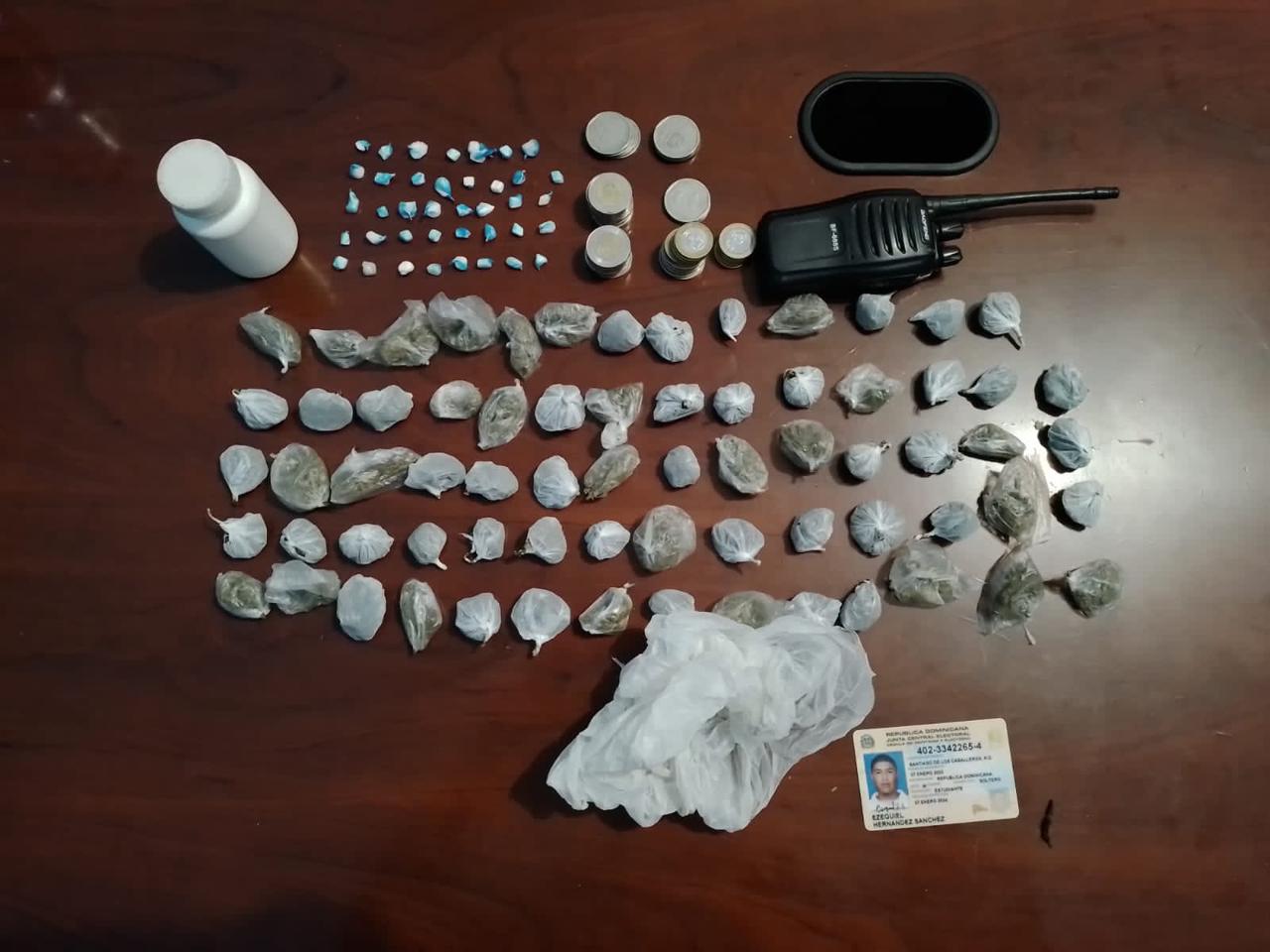 Según la uniformada, Hernández Sánchez, al ser requisado por los agentes, le fue ocupado un bulto pequeño que contenía en su interior 39 porciones de un material rocoso, presumiblemente crack y 69 de presunta marihuana, una radio de comunicación, así como también la suma de $570 pesos en moneda.