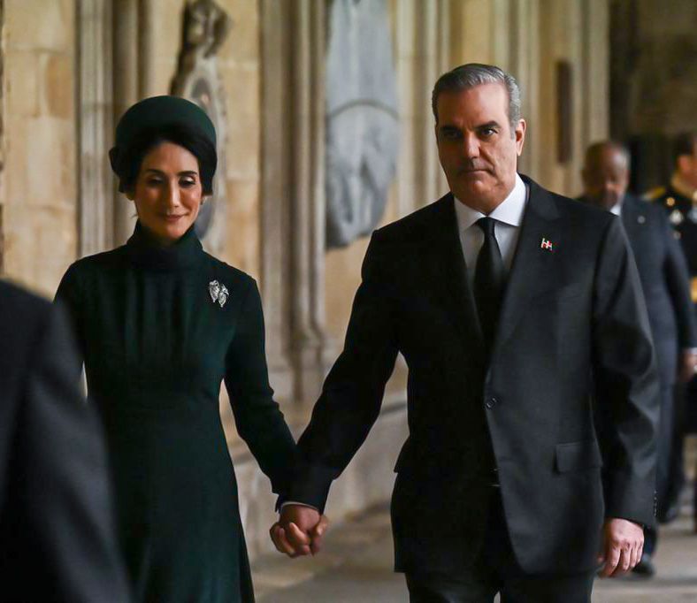 El Presidente Abinader llegó a la Abadía de Westminster, lugar de la ceremonia de coronación, alrededor de las 8:00 de la mañana, hora local, acompañado de la Primera Dama Raquel Arbaje.