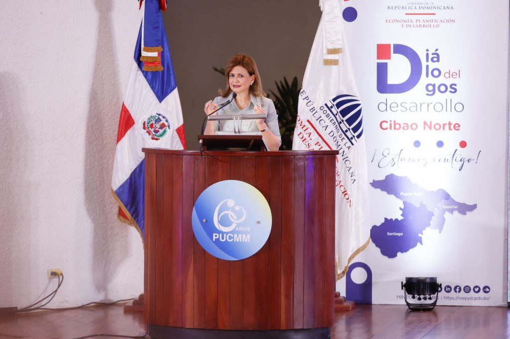 Santiago. – La vicepresidenta de la República, Raquel Peña, fue la invitada de honor de la segunda edición del espacio de Diálogos del Desarrollo para las provincias del Cibao Norte, realizado por el Ministerio de Economía, Planificación y Desarrollo, el Teatro de la Pontificia Universidad Católica Madre y Maestra (PUCMM).