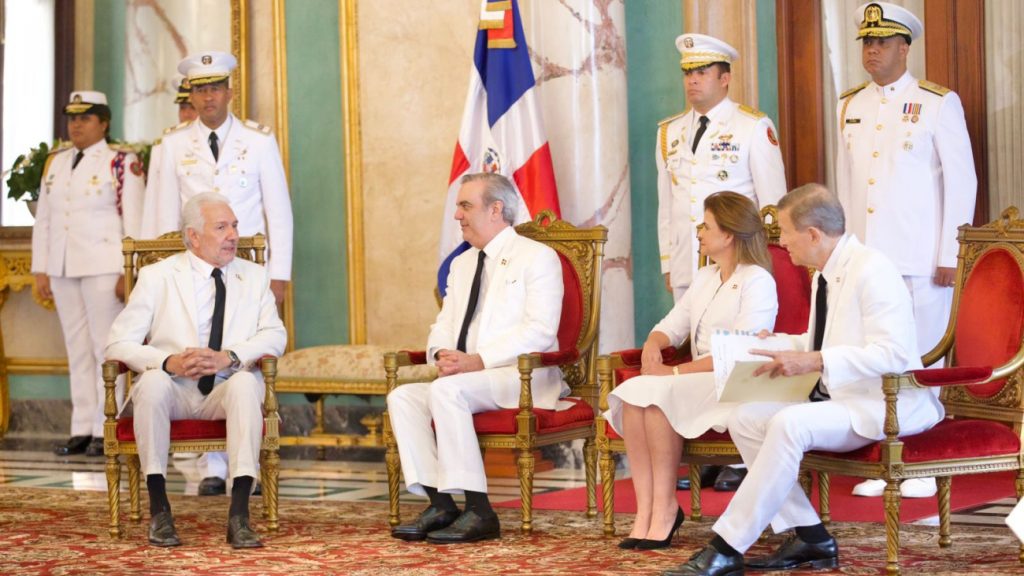 Santo Domingo. – El presidente Luis Abinader recibió este lunes las cartas credenciales de ocho nuevos embajadores acreditados en el país, representantes de El Salvador, República Popular China, Colombia, Yemen, Bielorrusia, Tailandia, Hungría y Suecia, en una ceremonia solemne realizada en el Palacio Nacional.