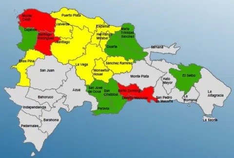 El Centro de Operaciones y Emergencia (COE) elevó a cuatro las provincias en alerta roja, mientras mantiene otras nueve en amarilla y siete en verde.