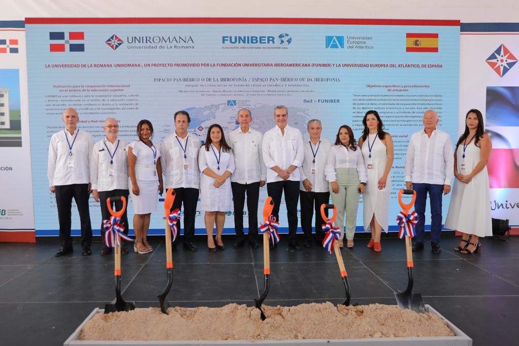 Más temprano, el presidente Abinader encabezó el acto de primer palazo para la construcción de las edificaciones de la Universidad de La Romana (UNIROMANA), proyecto promovido por la Fundación Universitaria Iberoamericana (FUNIBER) y la Universidad Europea del Atlántico, de España.