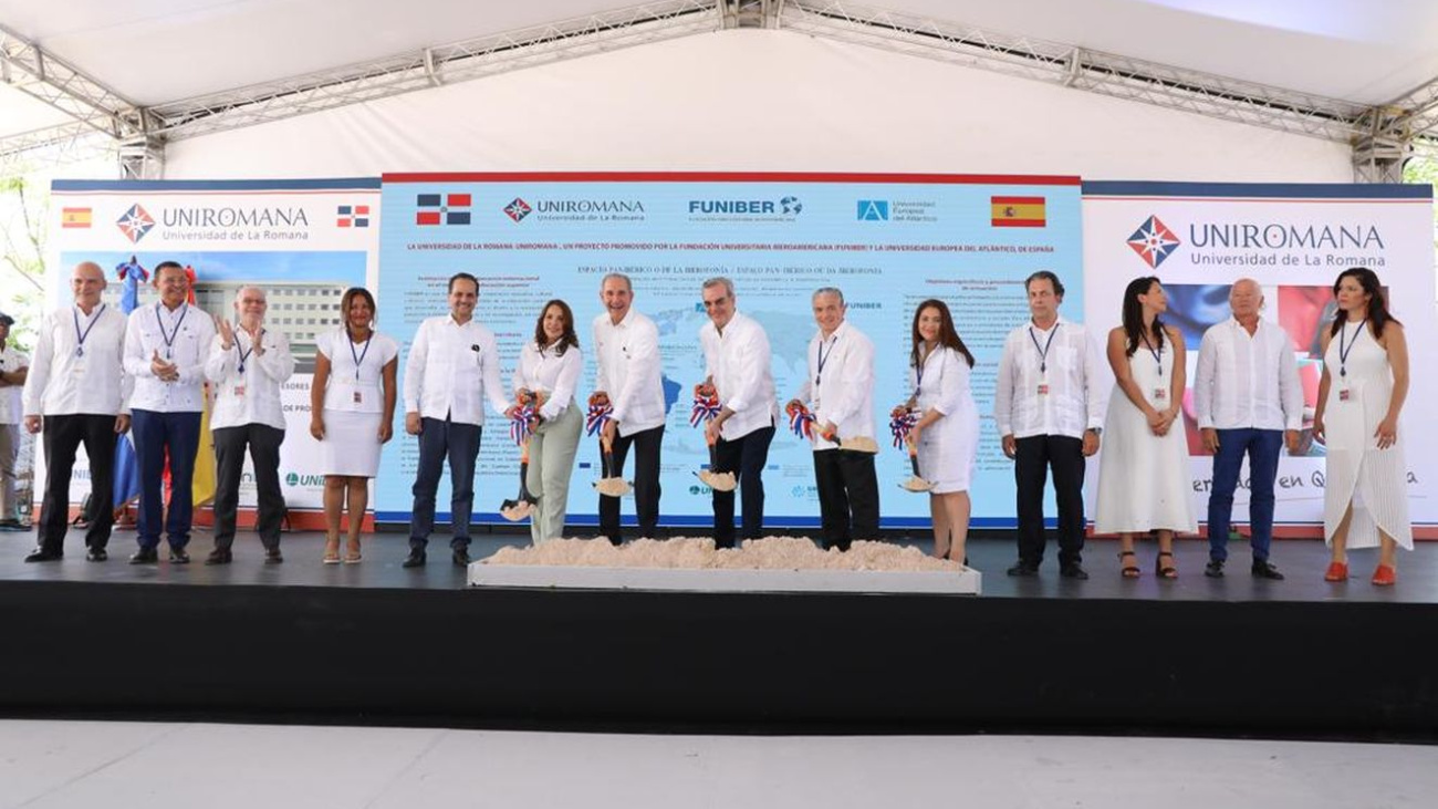 Más temprano, el presidente Abinader encabezó el acto de primer palazo para la construcción de las edificaciones de la Universidad de La Romana (UNIROMANA), proyecto promovido por la Fundación Universitaria Iberoamericana (FUNIBER) y la Universidad Europea del Atlántico, de España.