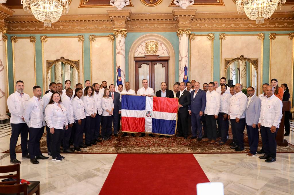 Santo Domingo.- El presidente Luis Abinader entregó este martes la bandera nacional a la delegación dominicana que participarán en los XXlV juegos Centroamericanos y del Caribe, San Salvador 2023, a celebrarse del 23 de junio al 8 de julio en San Salvador y que tendrá como subsede a República Dominicana.