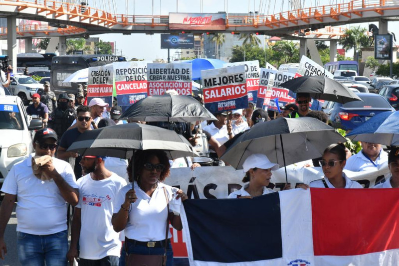 El grupo, compuesto por conductores, operadores de trenes y agentes de explotación, caminó por casi dos horas desde la estación Juan Pablo Duarte del Metro, situada en la avenida John F. Kennedy esquina Máximo Gómez, hasta llegar a las inmediaciones de la casa presidencial.