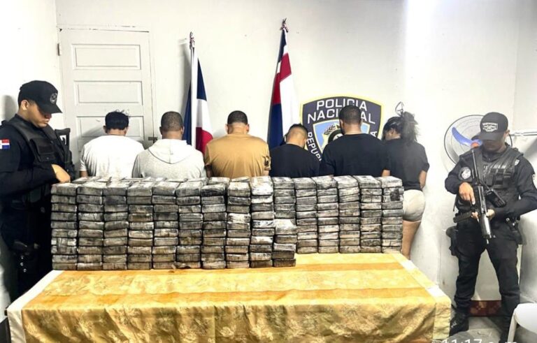 En la operación, realizada gracias a los patrullajes preventivos en el tramo carretero La Guazara-Barahona, fueron apresados seis presuntos narcotraficantes, entre ellos una mujer, en cuyo poder se ocupó además un arma de fuego y la suma de 48 mil pesos en efectivo, entre otras evidencias.