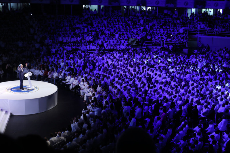 En un agresivo discurso político dirigido a la oposición llamó a la unidad de los perremeístas para mantener el poder en el 2024, y lanzó su grito de guerra: “No miren pa’ tra”, que se convirtió inmediatamente en el eslogan: “No mire pa’ tra, Abinder cuatro años más”.
