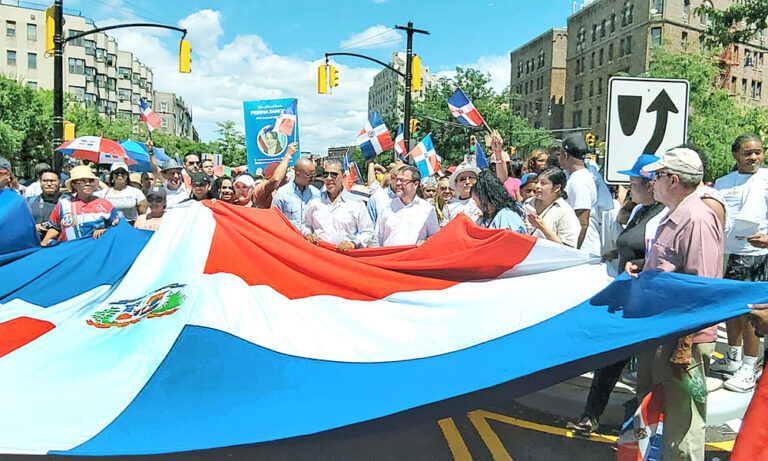 La bandera tricolor fue la gran protagonista de la Parada Dominicana de El Bronx, que se celebró ayer en su aniversario número 34.