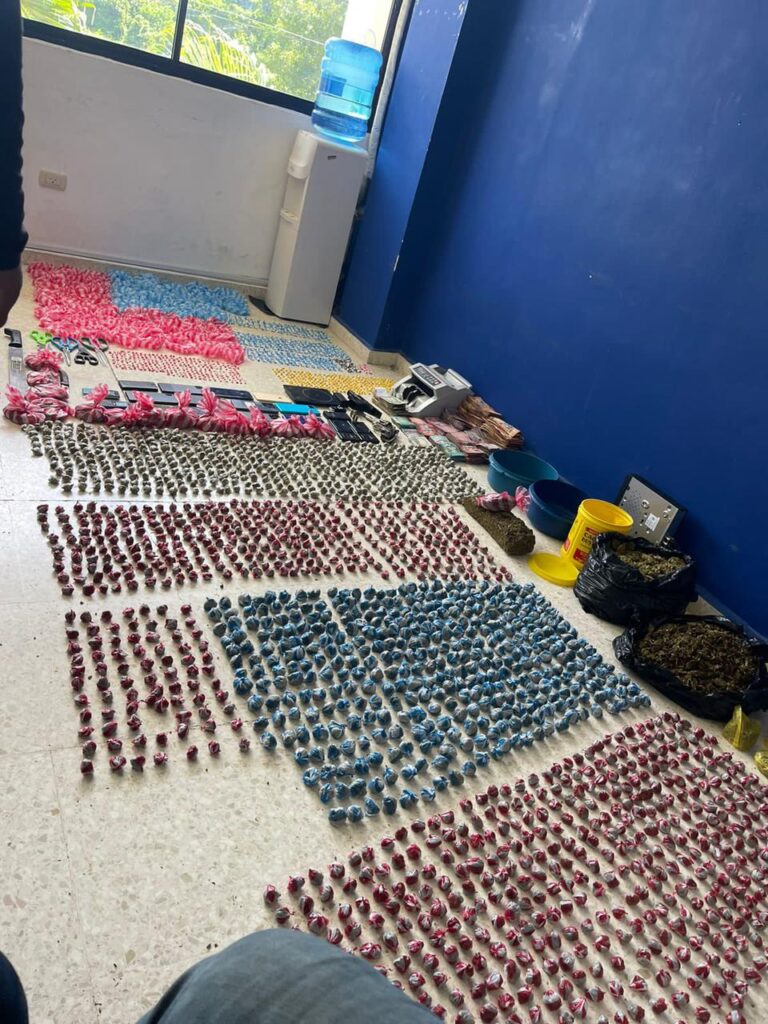 Además, se encontraron sustancias controladas, incluyendo marihuana, crack y cocaína, divididas en porciones para su venta.