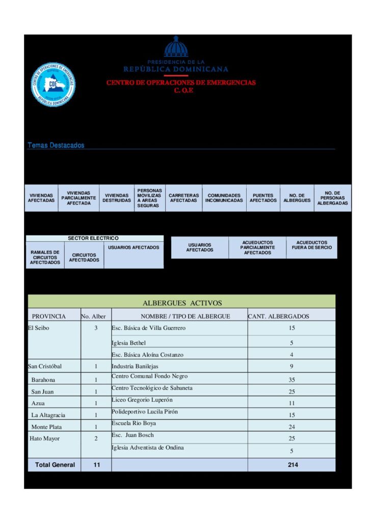 Hasta el momento, se reporta que alrededor de 280 personas han sido desplazadas de sus hogares debido a las inundaciones y riesgos asociados con la tormenta. Un total de 214 personas han sido albergadas en refugios temporales para garantizar su seguridad.