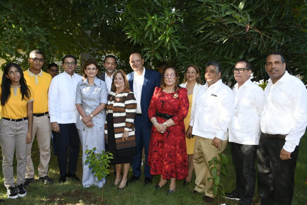 En el acto la vicepresidenta Raquel Peña junto a la Gobernadora Rosa Santo, la directora regional de Educación Marieta Díaz, el Ministro de Salud, Daniel Rivera, el director de APEDI Saul Abreu, funcionarios presentes junto a estudiantes realizaron la siembra de árboles en el área verde del centro como proyecto de forestacion que el Minerd propone en todos los centros educativos del país en el día de inicio de año escolar 2023-2024.