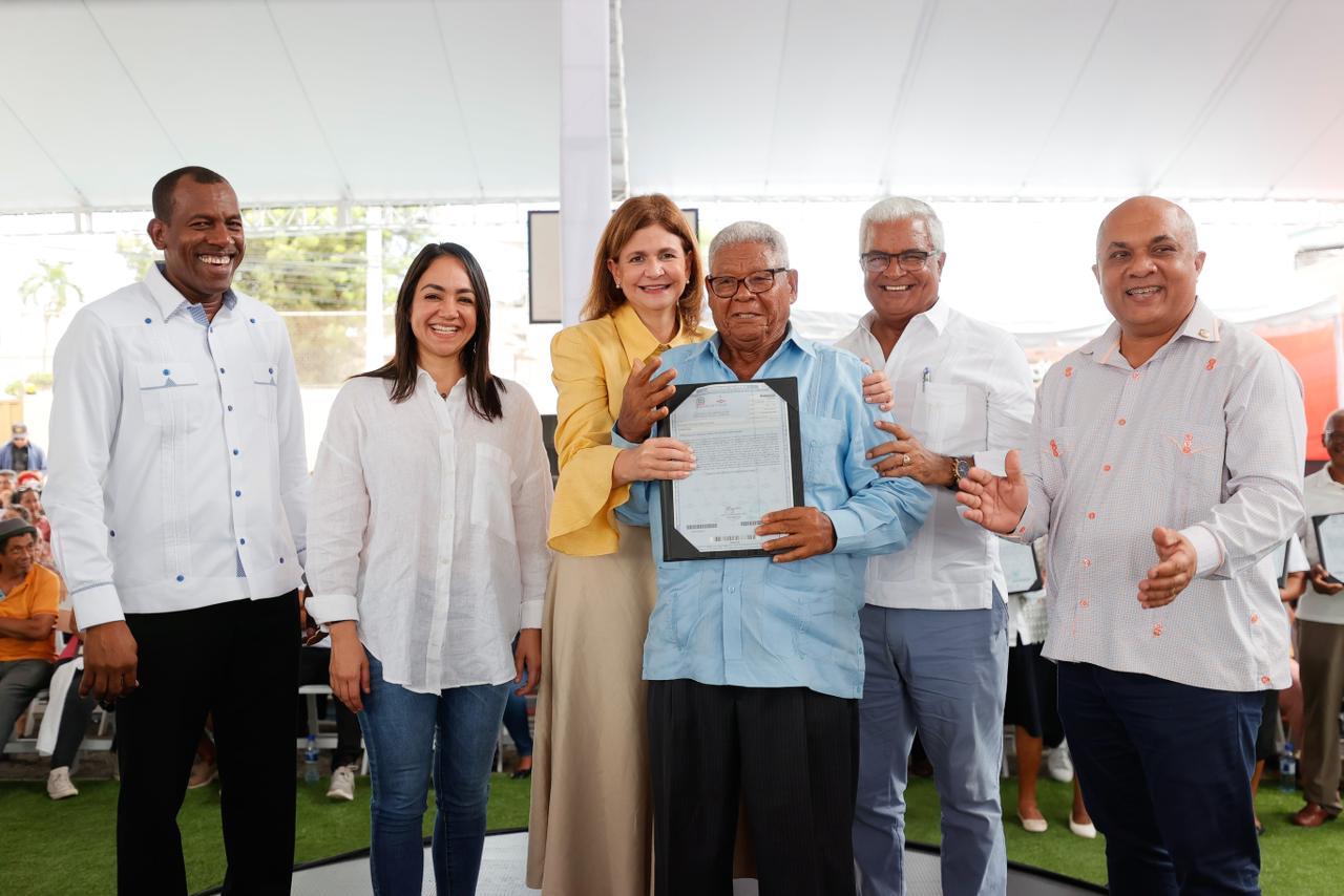 Posteriormente, la vicepresidenta se trasladó a Los Peralejos, en el Distrito Nacional, donde entregó 420 títulos de propiedad a igual número de familias.