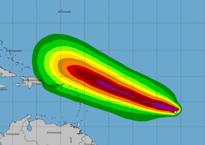 En la trayectoria pronosticada, detalla, se espera que Lee pase "bien al norte" de las Islas de Sotavento del norte, Islas Vírgenes y Puerto Rico durante este fin de semana y hasta las primeras horas de la próxima semana.
