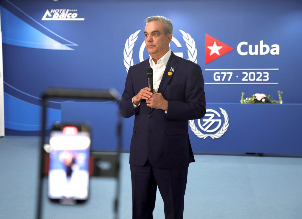 Santo Domingo.- El presidente Luis Abinader regresó este viernes en la tarde al país tras una visita de nueve horas a Cuba, en donde participó en la asamblea del Grupo de los 77 y China.