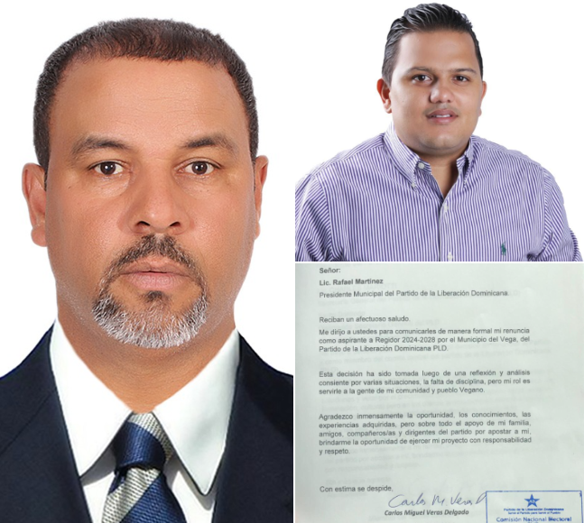 La Vega.- Dos regidores de este municipio renunciaron de manera irrevocable a sus militancias en el Partido de la Liberación Dominicana (PLD) mediante cartas enviadas al presidente y secretario general de esa organización, Danilo Medina y Charlie Mariotti, respectivamente.