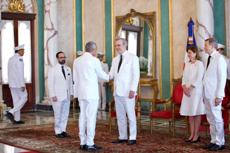 El presidente Luis Abinader recibió este martes, junto a la vicepresidenta Raquel Peña y el ministro de Relaciones Exteriores, Roberto Álvarez, las cartas credenciales de seis nuevos embajadores.