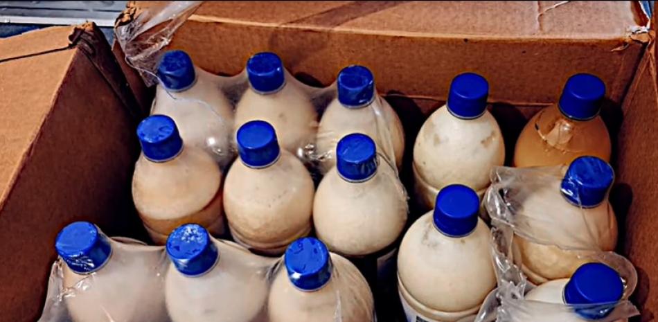 De acuerdo al informe de las botellas ocupadas, 38 de ellas, que simulaban ser bebidas lácteas, tenían en su interior cocaína líquida, con un peso total de 33.59 kilogramos de cocaína.