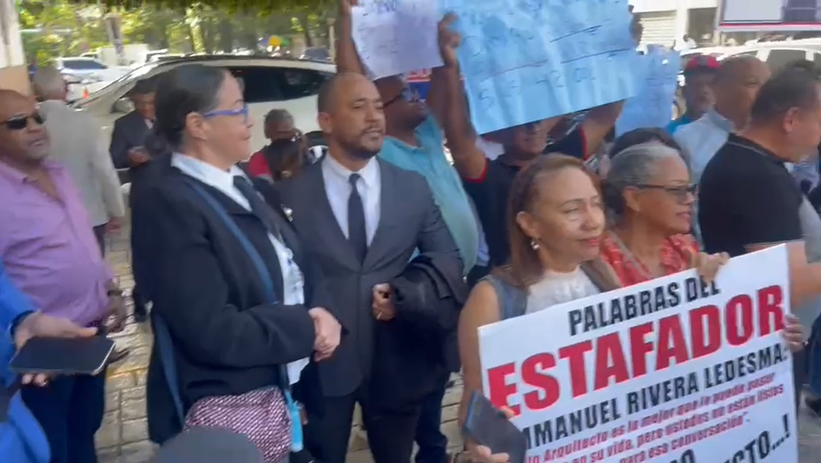 SANTO DOMINGO.- Con la consigna “nos llegó la información que aquí está el ladrón” , más de una decena de personas se presentaron la mañana de este viernes al Palacio de Justicia de  Ciudad Nueva, Distrito Nacional, para exigir el pago de aproximadamente de 3 millones de dólares que supuestamente fueron estafados en este esquema fraudulento.