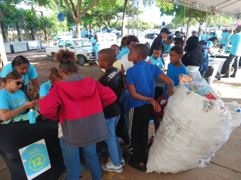 Desde tempranas horas de este sábado decenas de personas han acudido al Ayuntamiento del Distrito Nacional (ADN) con fundas repletas de plásticos para intercambiarlas por juguetes.