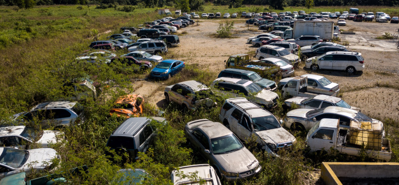 Las tomas narran cómo el sol ha ido desvaneciendo el techo se decenas de vehículos y como algunos están siendo tragados por la altura del pasto que allí crece.