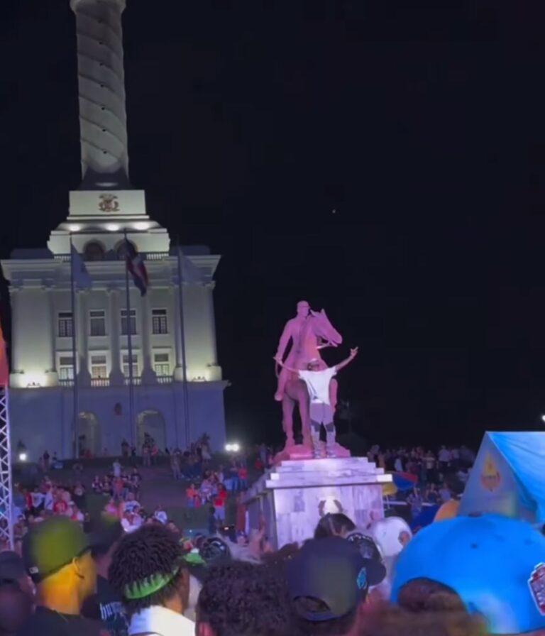 Santiago.-La imagen de un hombre tomando alcohol, en el lugar donde reposa la estatua del prócer Gregorio Luperón durante la celebración del primer domingo de carnaval, ha causado indignación entre los santiaguenses.