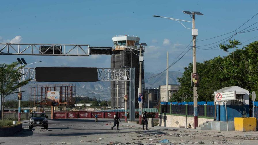 Agentes de la Policía como militares haitianos tratan de proteger las instalaciones del aeropuerto.
