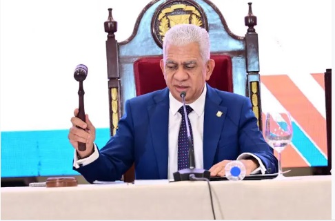 Con la presencia de 20 senadores en la sesión, el representante de la provincia Peravia, Milcíades Franjul, habló a los asistentes y resaltó los trabajos de obras realizados por el gobierno del presidente Luis Abinader, gestionadas durante su período como senador de la provincia.