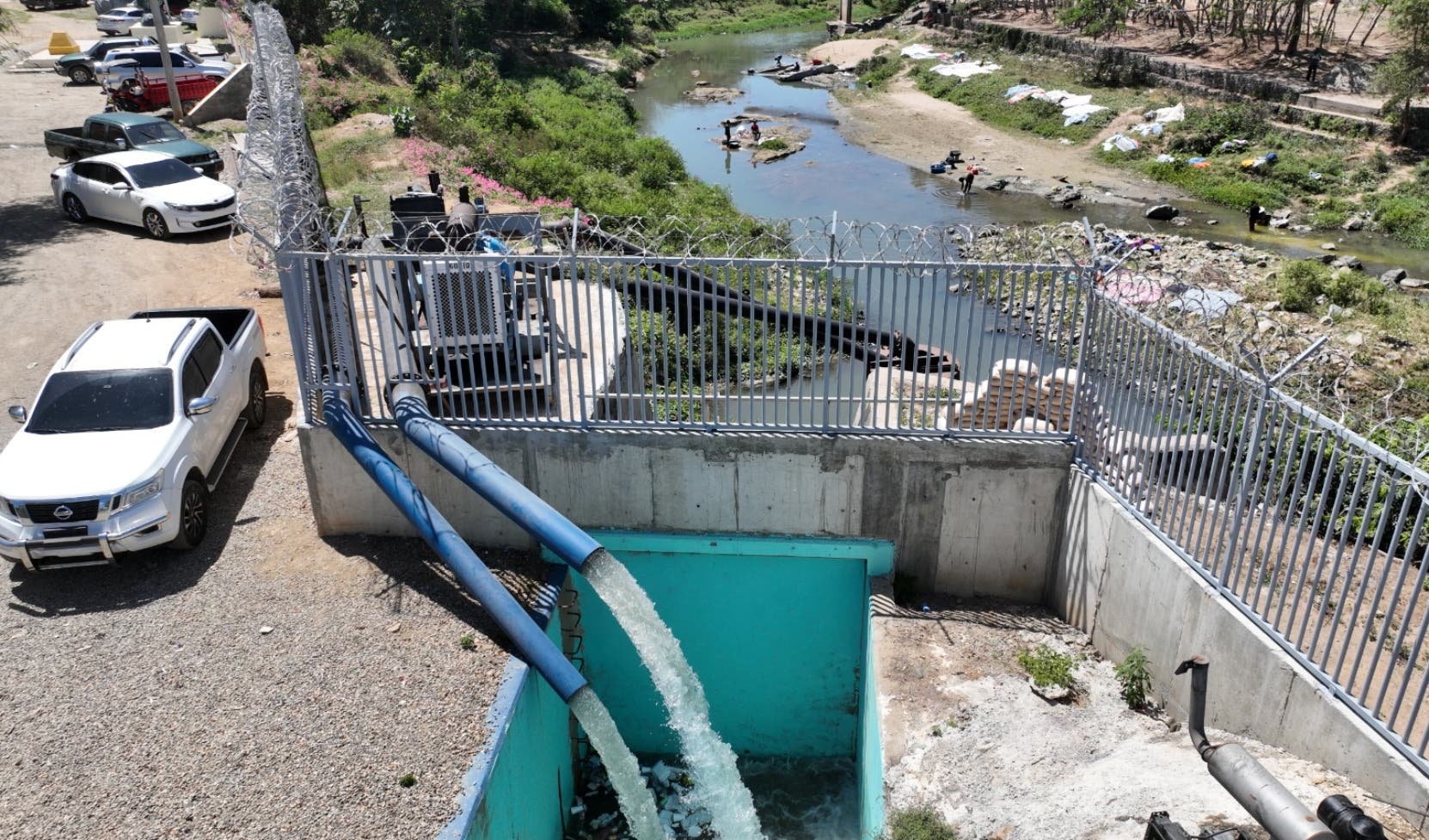 Santo Domingo.-Luego de que el caudal del río Masacre experimentara una reducción por la baja pluviometría y varias horas después de la apertura del canal en el lado haitiano, el Instituto Nacional de Recursos Hidráulicos (Indrhi) comenzó a operar el sistema de bombeo en La Aduana Vieja para alimentar el canal La Vigía.