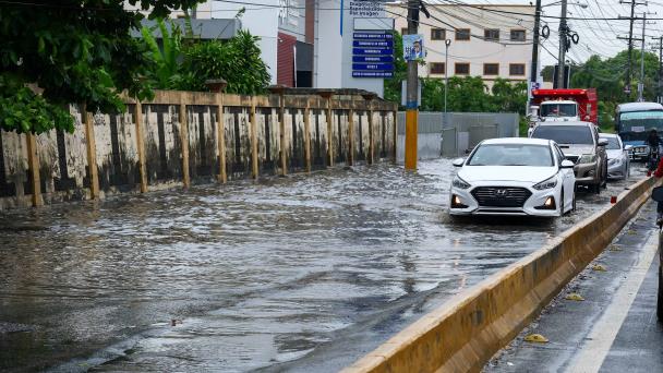 En sectores de Santo Domingo Norte, como Villa Mella y Sabana Perdida, se han generado inundaciones que provocan congestionamientos de vehículos en sus calles.