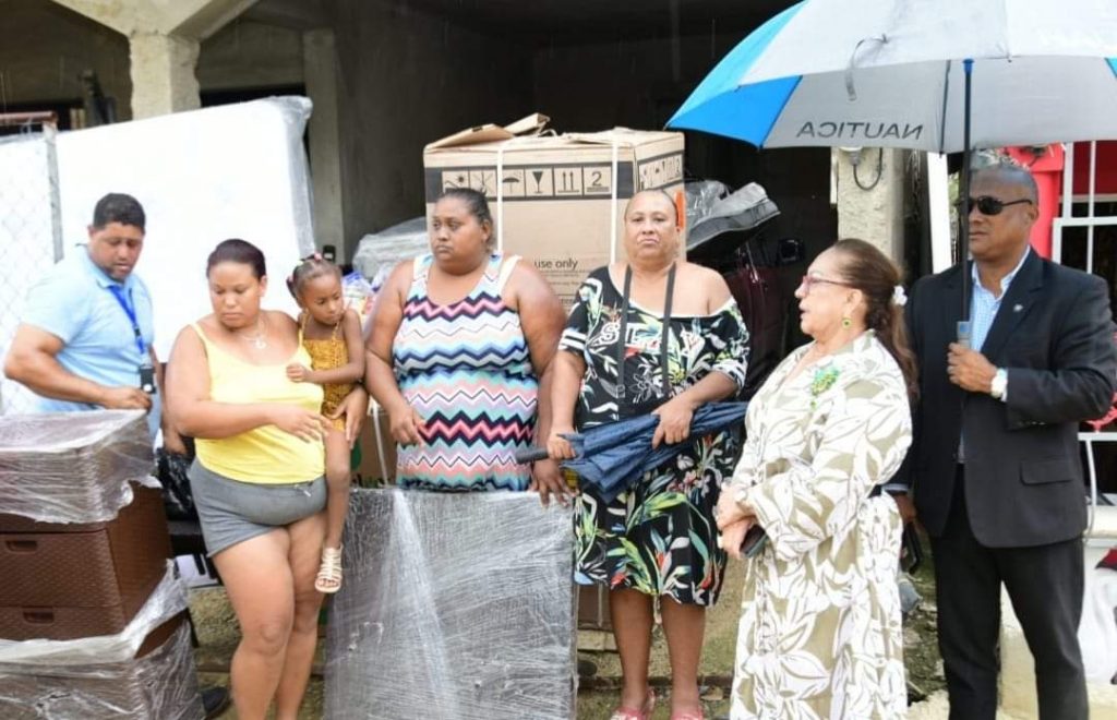 Yahaira quien vive junto a siete personas que son parte de su familia, fue entrevistada por un comunicador, solicitando ayuda por su situación, ya que lo perdió todo, por lo que ayer en nombre del presidente, Luis Abinader, la gobernadora fue a entregarle una nevera, juego de comedor, estufa, abanico, cama, colchones, sabana, mosquitero, gavetero y raciones de alimentos.