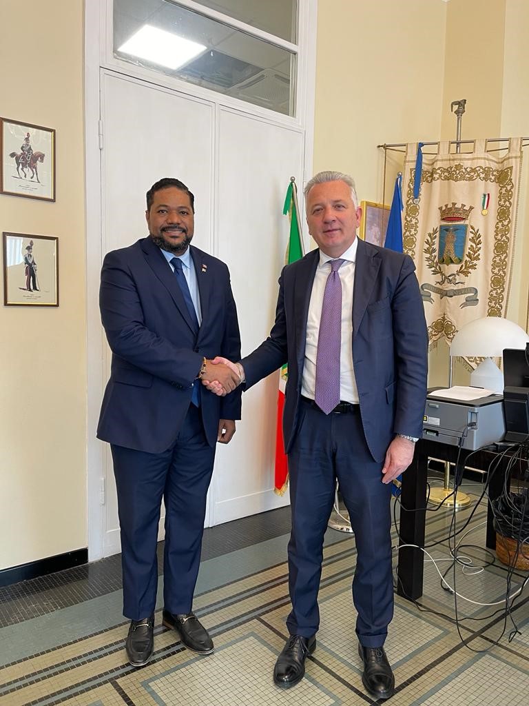 El Lcdo Nelson Carela Luna, Cónsul General de la República Dominicana en Génova, cumple visita Oficial al Sindico PierLuigi Pieracchini, en el Palacio Civico, donde se enuentra el Municipio central.